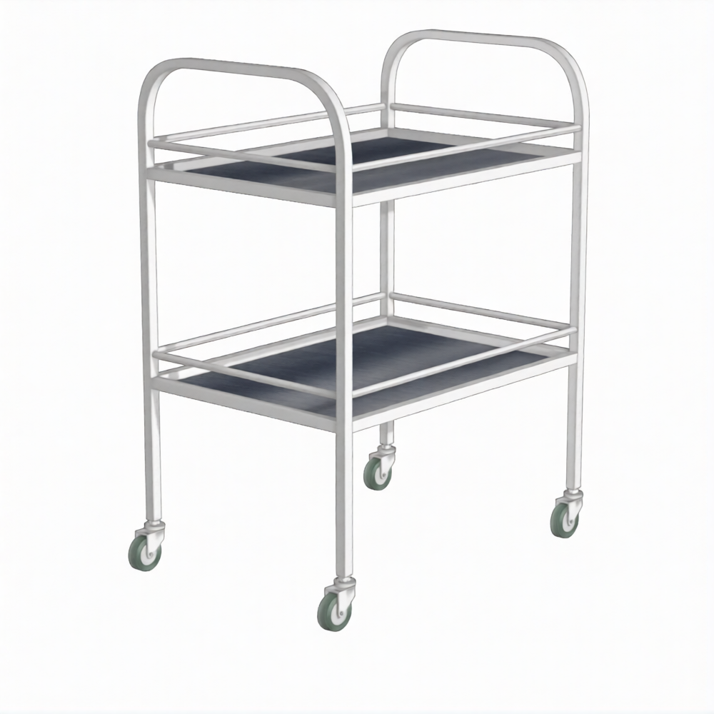 Стол инструментальный с ограждением (колеса резина) СИо (каркас белый) применяется для размещения на нем инструмента, материалов, медикаментов, в том числе применяемых в стоматологической практике, в кабинетах врачей, перевязочных, операционных, на постах медицинских сестер в отделениях больниц, в клиниках, поликлиниках и других медицинских учреждениях.