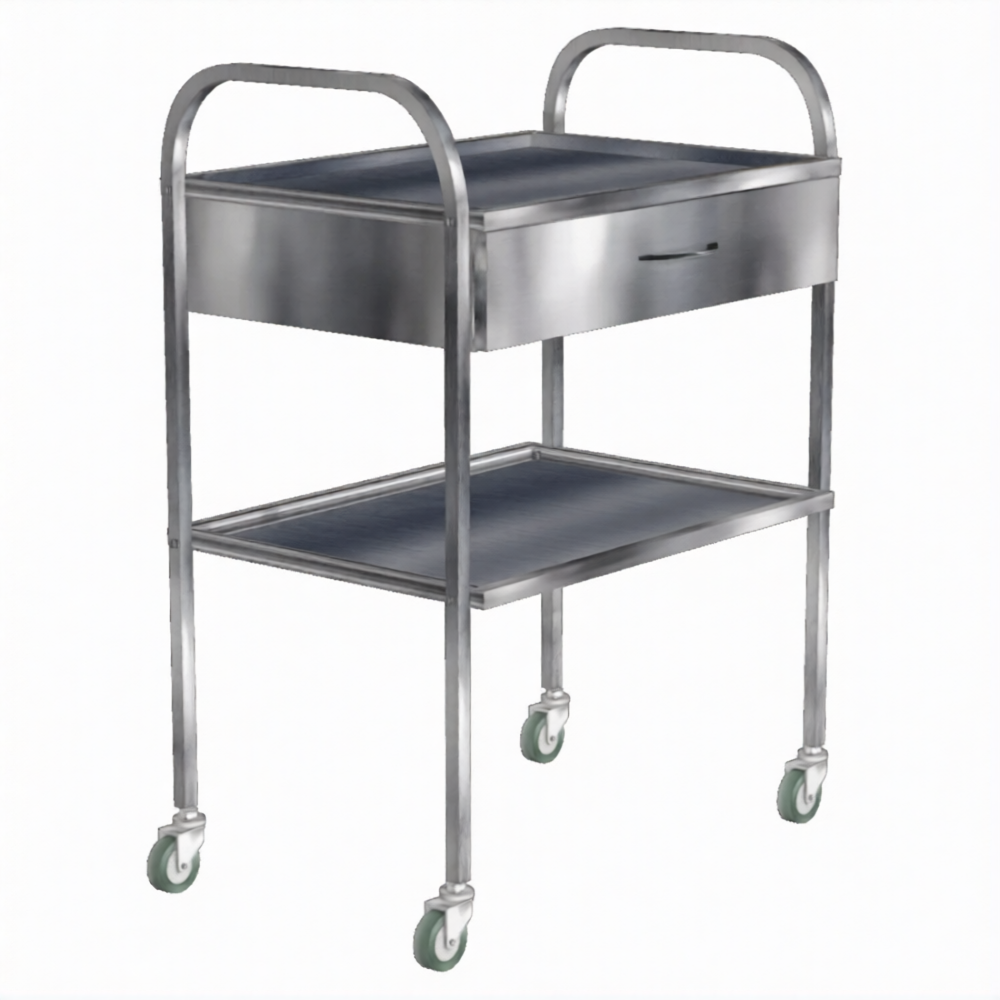 Стол инструментальный с ящиком СИн-2н (нержавеющая сталь, колеса резина) — это двухъярусный мобильный стол с выдвижным ящиком, применяемый для размещения инструмента, материалов и медикаментов, в том числе в стоматологической практике, в кабинетах врачей, перевязочных, операционных, на постах медицинских сестер в отделениях больниц, клиниках, поликлиниках и других медицинских учреждениях. Модель полностью выполнена из нержавеющей стали.