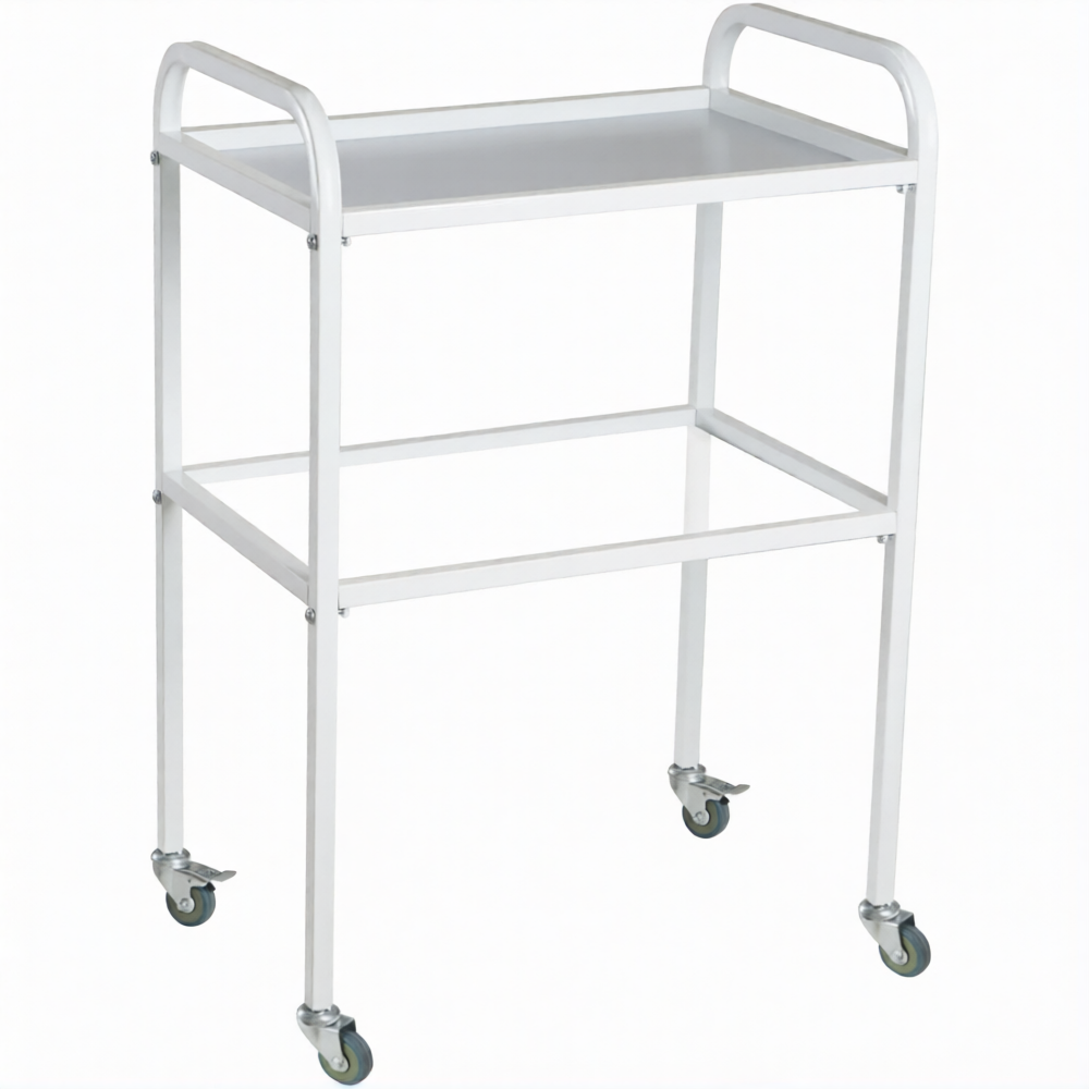 Стол медицинский инструментальный СМИ-02 (полки металл, колёса серая резина) предназначен для размещения инструмента, лекарственных препаратов и приборов.
