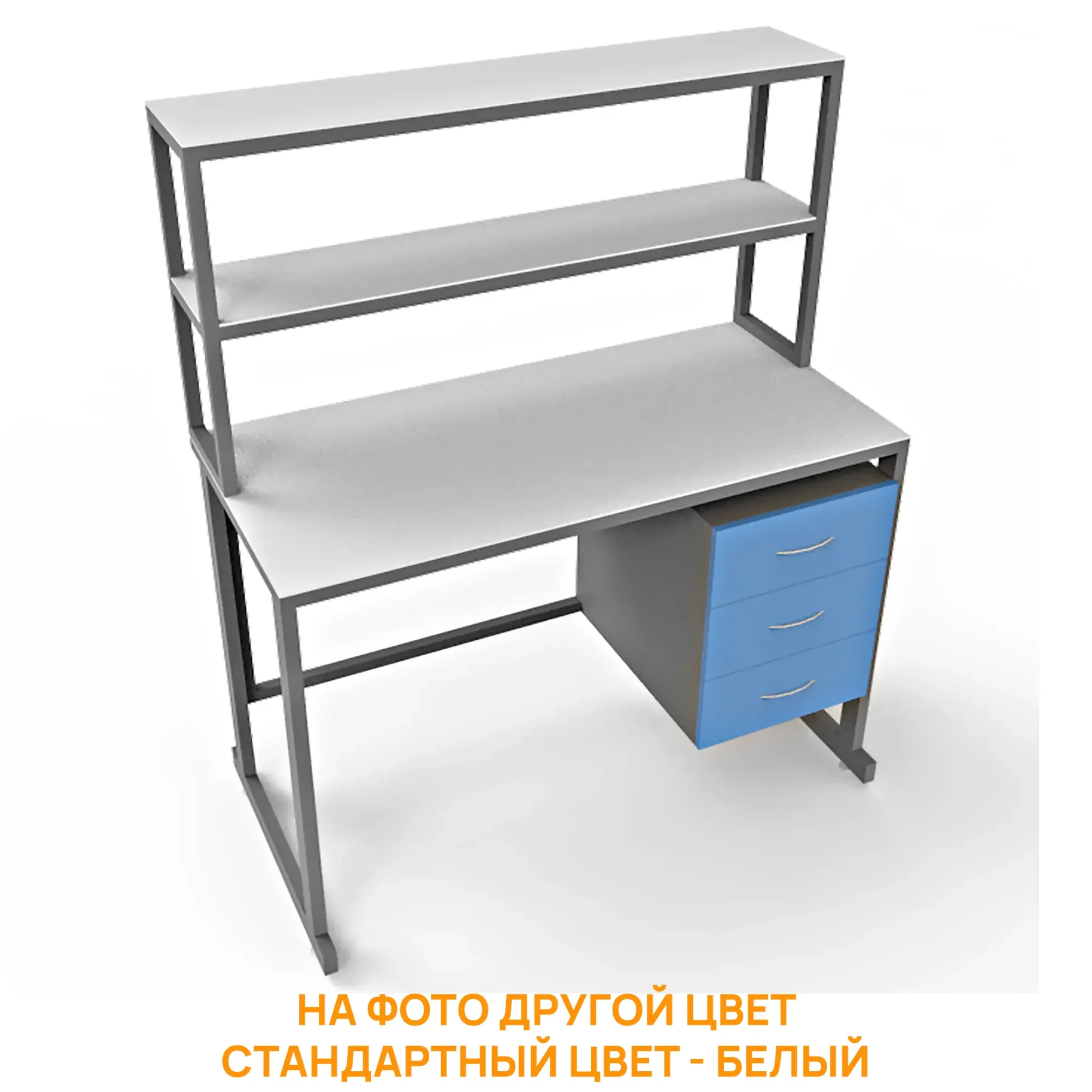 - Функциональная надстройка — две полки для дополнительного размещения оборудования, общая высота стола с надстройкой 1600 мм.
