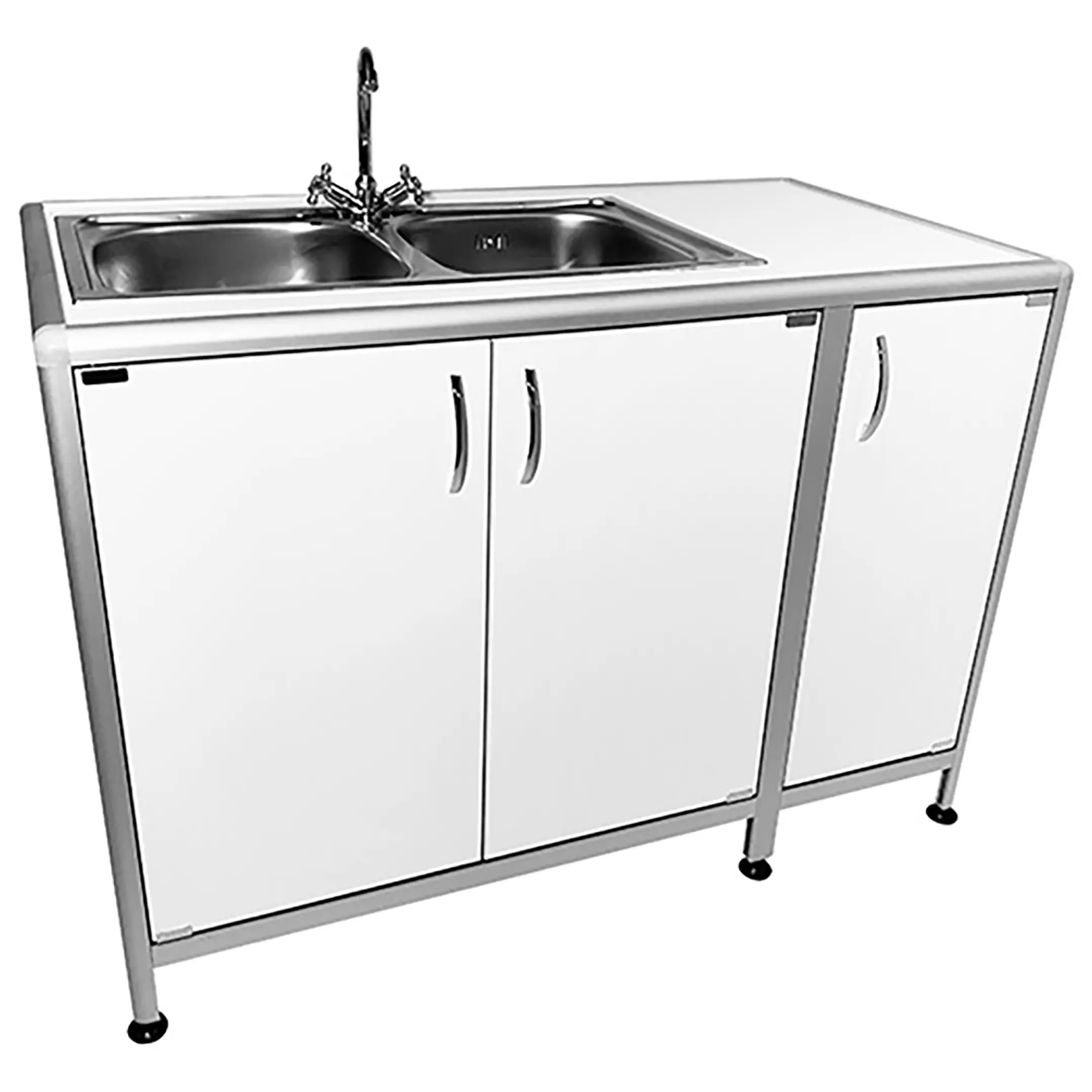 Стол-мойка лабораторная MED 13.005al (белый) — это высококачественное оборудование, специально разработанное для использования в лабораториях и медицинских учреждениях. Модель оснащена двухчашной мойкой со смесителем, тумбой с тремя дверцами и столешницей сбоку. Каркас выполнен из алюминиевого профиля, столешница и обшивка из ЛДСП.