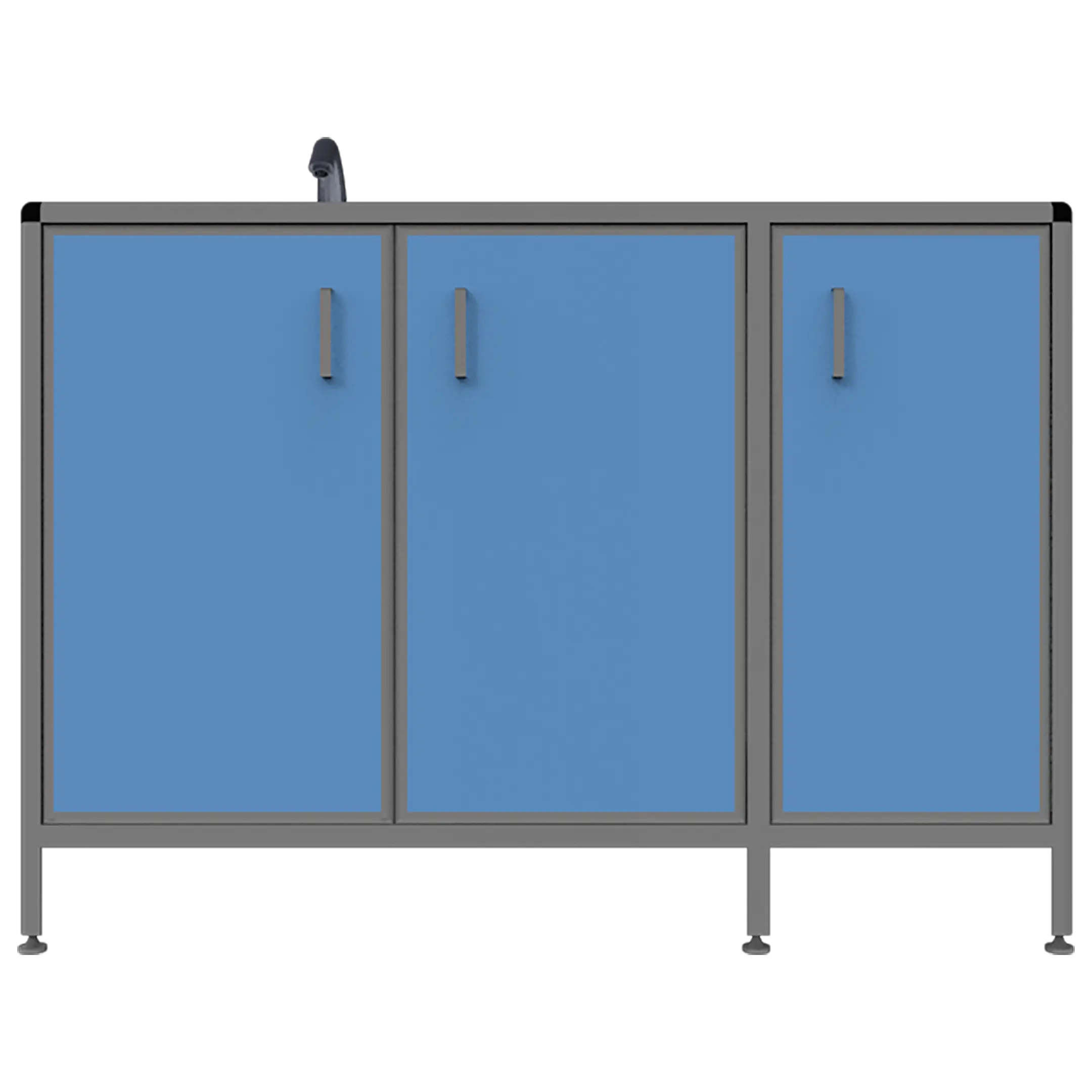 - Удобная система хранения — тумба под мойкой с тремя дверцами для хранения лабораторного инвентаря.