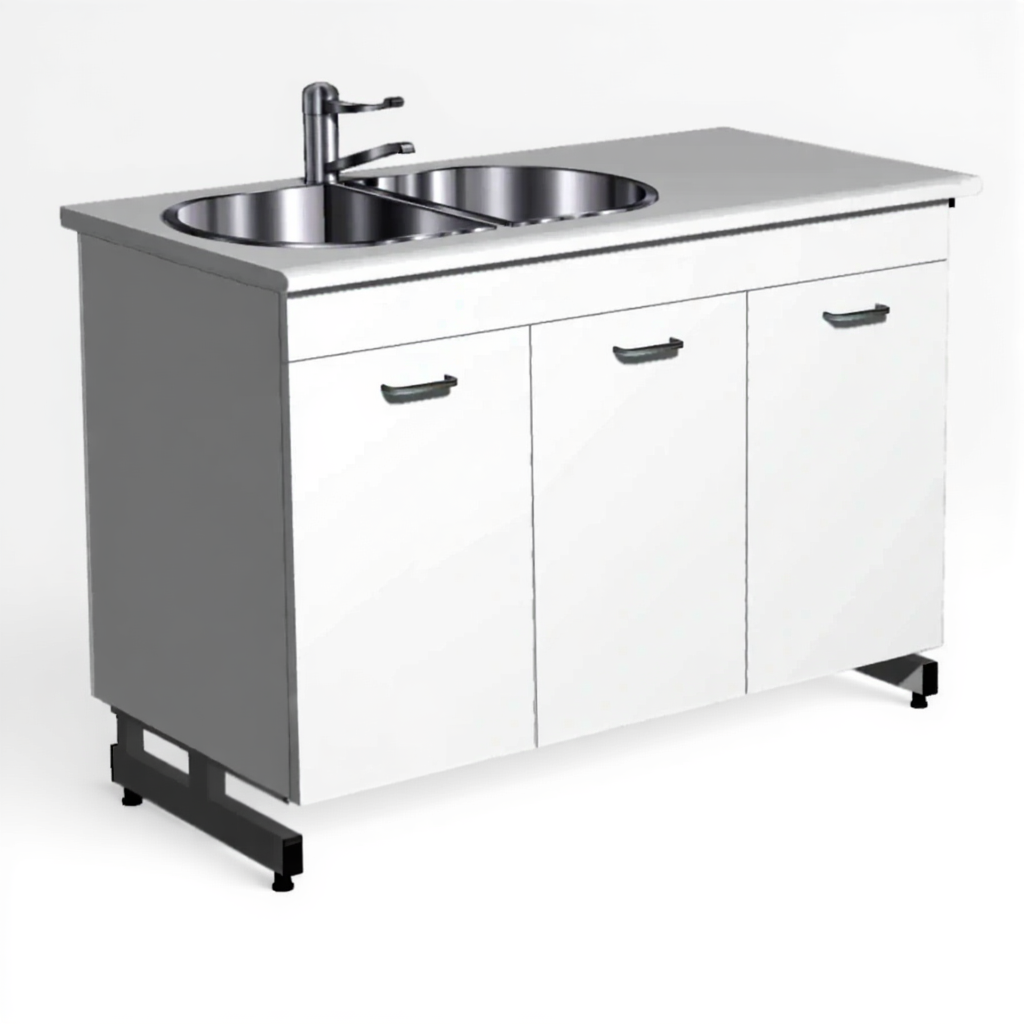 Стол-мойка СТм-206 «Премиум» 1200 (корпус ЛДСП серый, столешница постформинг серый, каркас серый) — это необходимая составляющая для оснащения рабочей зоны, обеспечивающая удобство и безопасность труда специалистов-исследователей в кабинетах лабораторий. Модель предназначена для мытья и сушки лабораторной посуды. Оснащена двухчашевой врезной мойкой из нержавеющей стали, локтевым смесителем и комбинированной системой хранения: в левом отделении две дверки, в правом — дверка и полка. Каркас выполнен из стального профиля, столешница из постформинга 26 мм, корпус из ЛДСтП 16 мм.