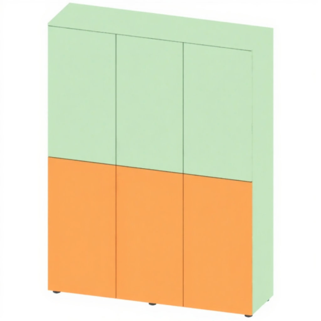 - Удобное разделение — каждая секция разделена по горизонтали на 2 равные ячейки с индивидуальной распашной дверью.