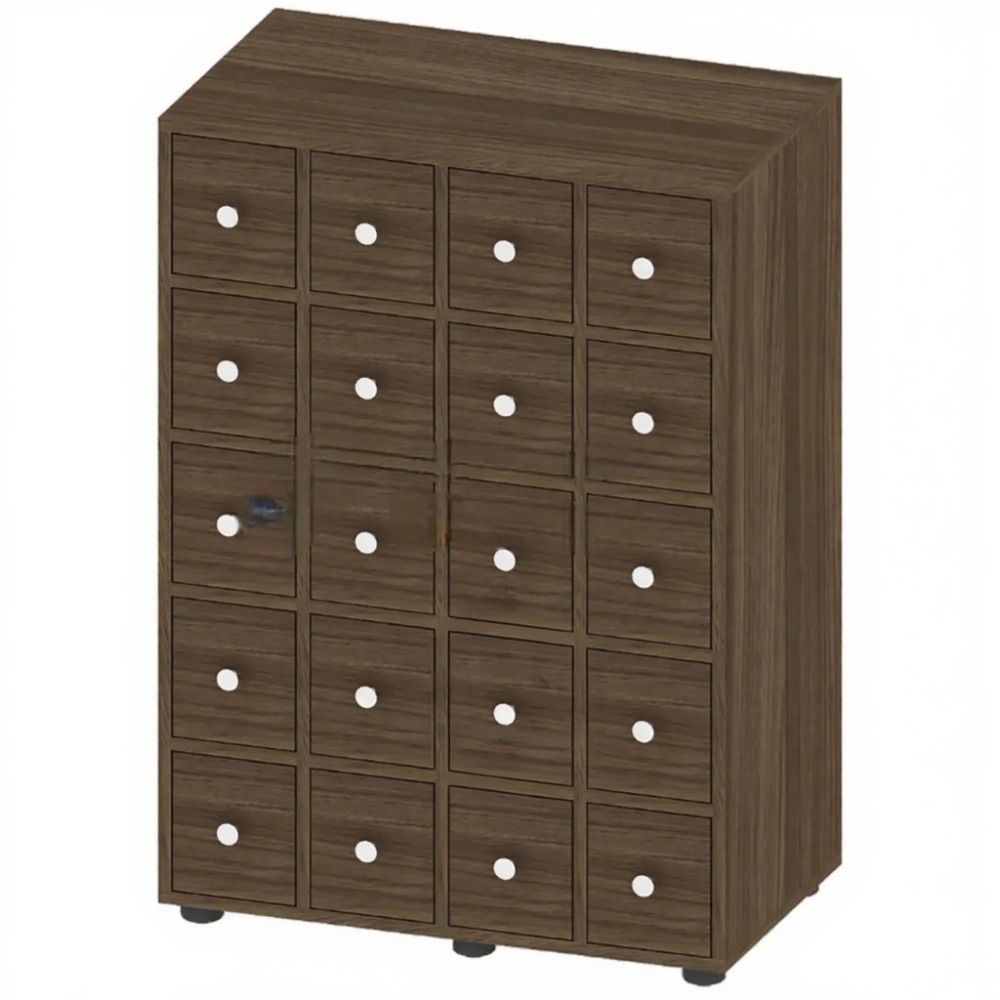 - Специализированное хранение — 20 выдвижных ящиков для упорядоченного хранения формуляров и карточек.
