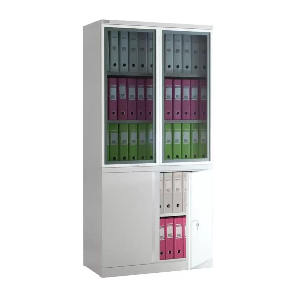 Шкаф NOBILIS NM-1991/2G — это функциональный офисный шкаф, сочетающий закрытые секции для хранения документов с элементами визуального контроля содержимого. Модель подходит для рабочих и административных помещений, где важно обеспечить порядок, удобный доступ и аккуратное представление документации.