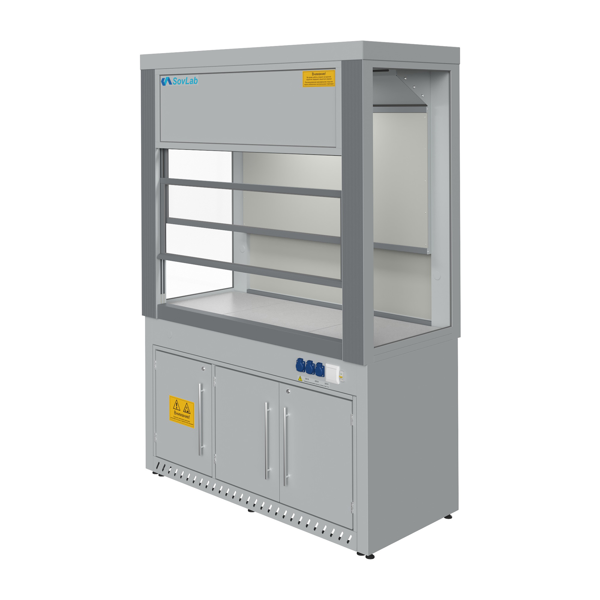- Функциональность — шкаф подходит для организации рабочего пространства и установки лабораторных приборов различного типа и размера.