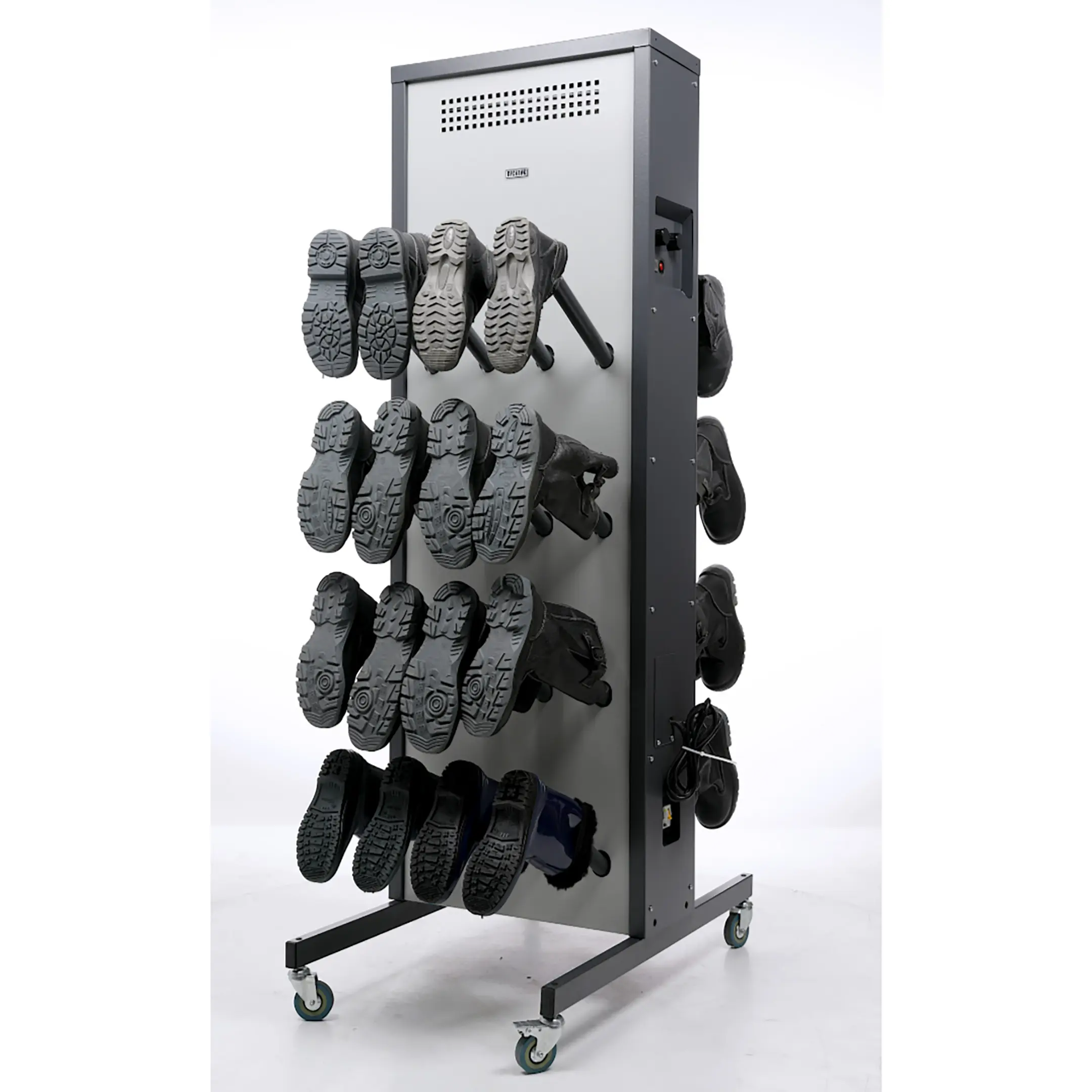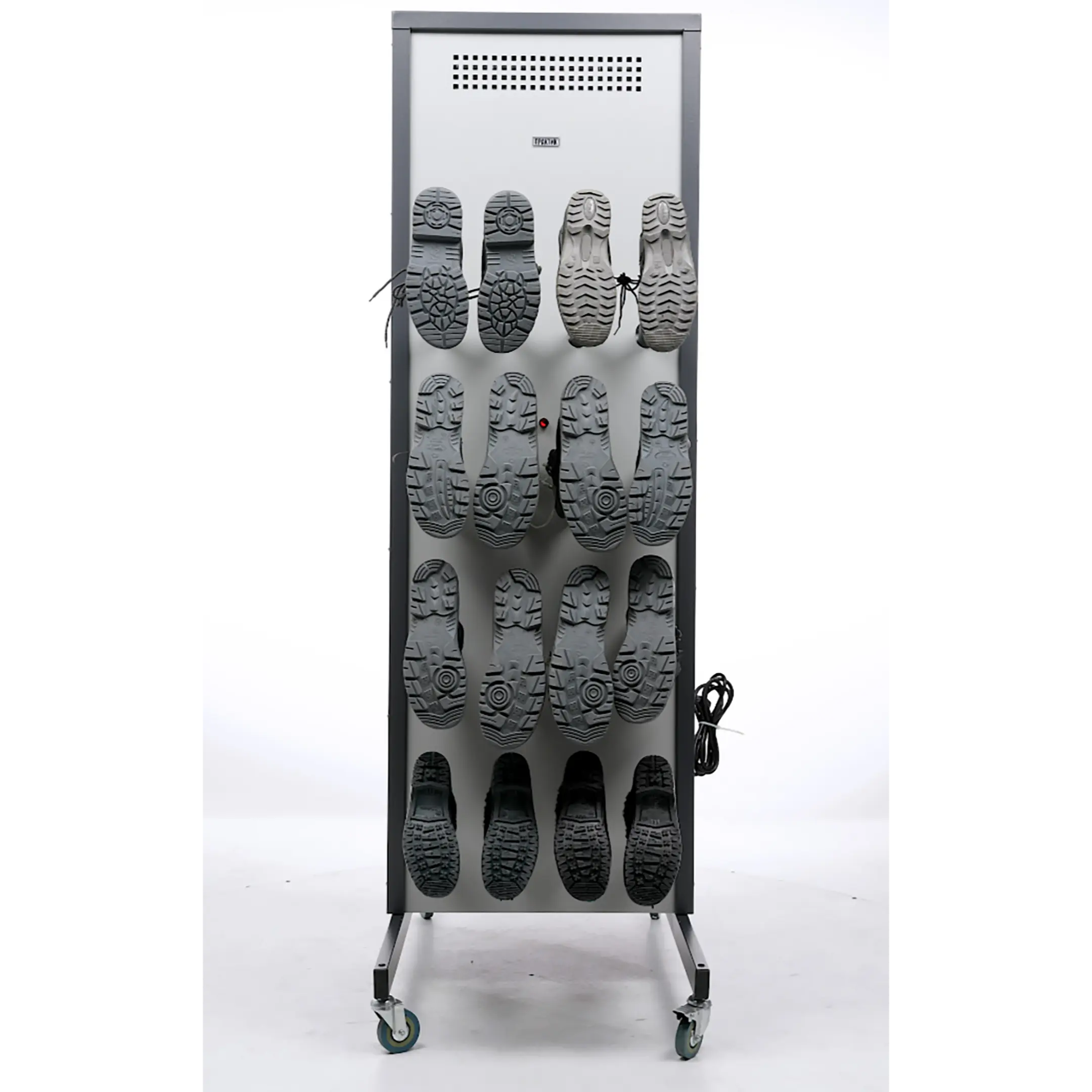 - Универсальность и удобство использования — модель подходит для различных типов помещений и может быть легко установлена в раздевалках, коридорах или специальных сушильных зонах. Удобная конструкция обеспечивает легкий доступ к обуви.