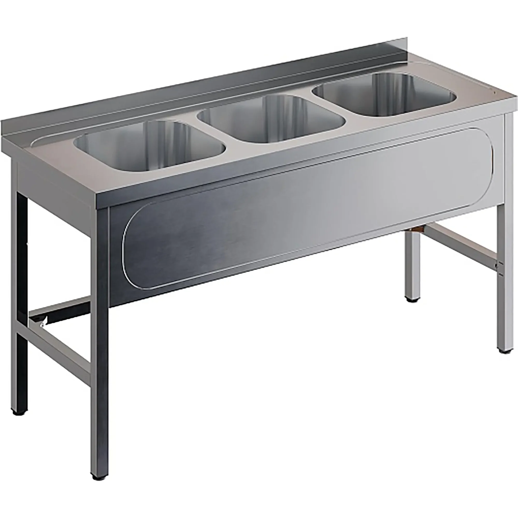 Ванна моечная трехсекционная цельнотянутая с бортом ВМЦ-3/18/6-Б разработана для применения в моечных отделениях предприятий общепита и торговли различного формата, пищевых производств и пищеблоков для мытья посуды, кухонного инвентаря, продуктов питания и рук персонала.