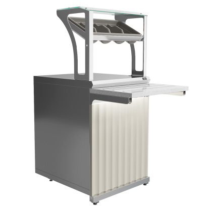 Прилавок для столовых приборов и подносов Luxstahl ПП (С)-600 Premium с направляющей из нержавеющей стали используется в составе линии раздачи на предприятиях торговли и общественного питания для хранения и раздачи столовых приборов, подносов, салфеток.