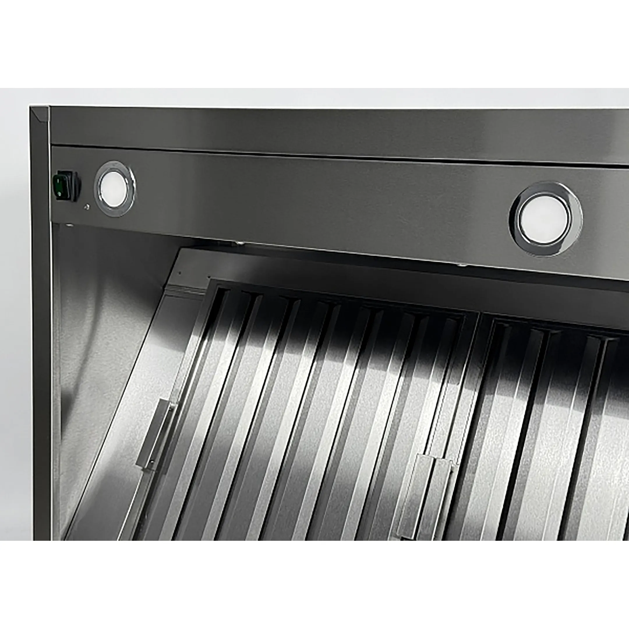 - В комплект включены съемные лабиринтные фильтры из нержавеющей стали Aisi 430, подсветка и сливной кран.