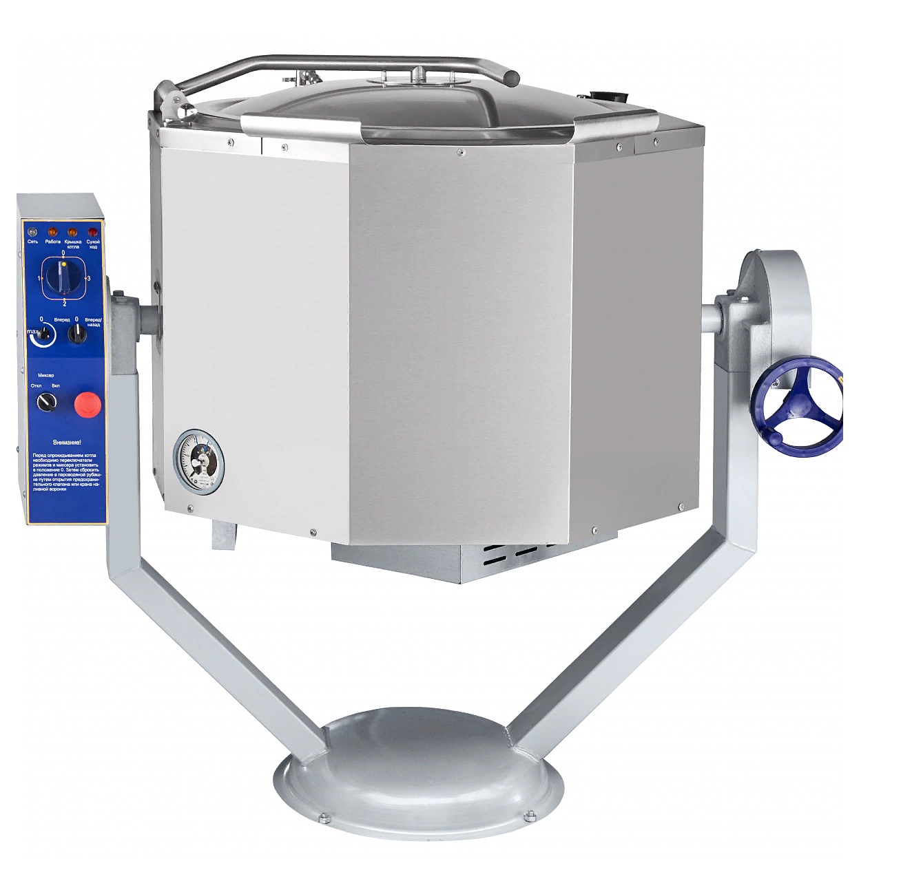 - Опрокидывание с ручным приводом — быстрый и удобный слив готового продукта без дополнительного оборудования.