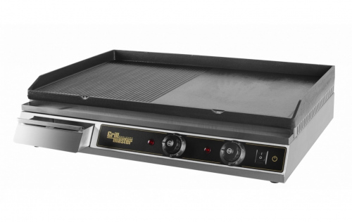 - Комбинированная чугунная жарочная поверхность — 1/2 гладкая и 1/2 рифленая, размером 700х425 мм, 2 зоны нагрева, позволяет выбирать тип обработки в зависимости от продукта.