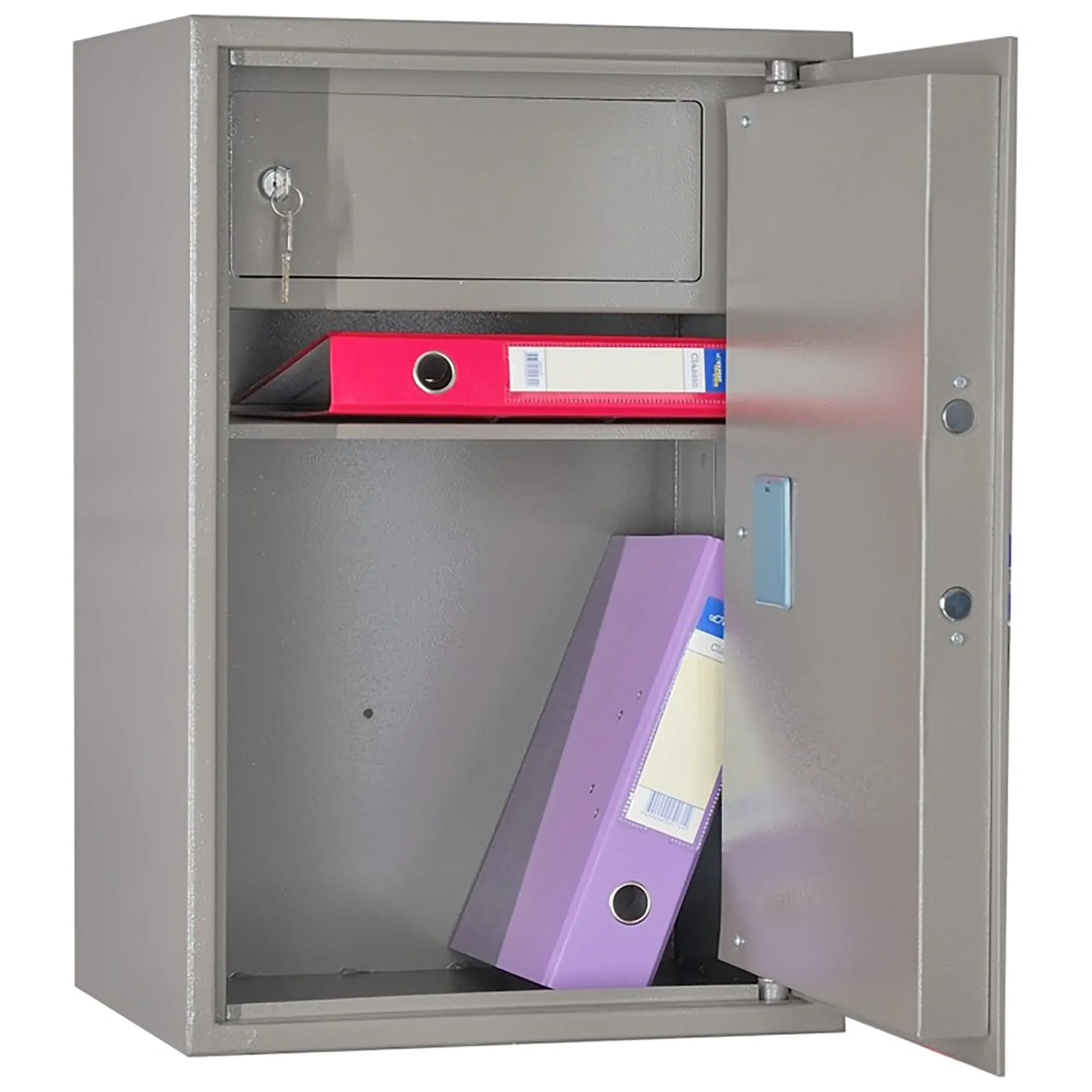 Шкаф офисный ШБМ-65Э — это современное решение для защищенного хранения документов, ценных предметов, медикаментов и оборудования в медицинских, офисных и административных учреждениях. Модель сочетает компактные габариты, электронную систему запирания и функциональное внутреннее пространство, обеспечивая высокий уровень безопасности и удобства хранения.