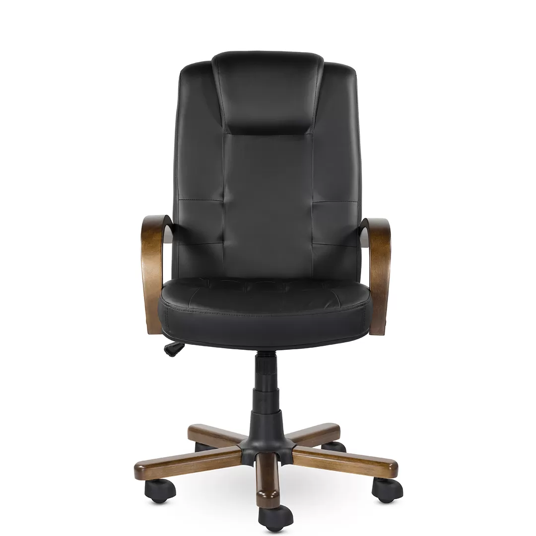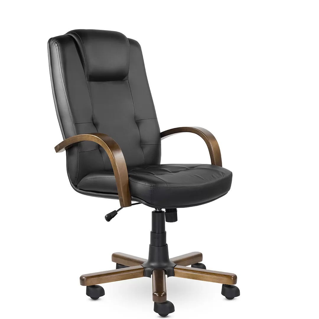 Кресло K‑41 Кендо В дерево — стильное и солидное офисное кресло руководителя с высокой спинкой, выразительным подголовником и декоративными деревянными элементами. Модель сочетает презентабельный дизайн, комфортную посадку и надёжную конструкцию, что делает её подходящим решением для кабинетов, переговорных и рабочих зон.