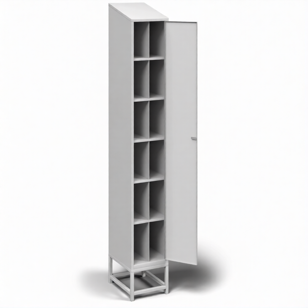 • Закрытый шкаф для хранения противогазов с дверью и подставкой окрашен порошковой краской, поверхность шагреневая.