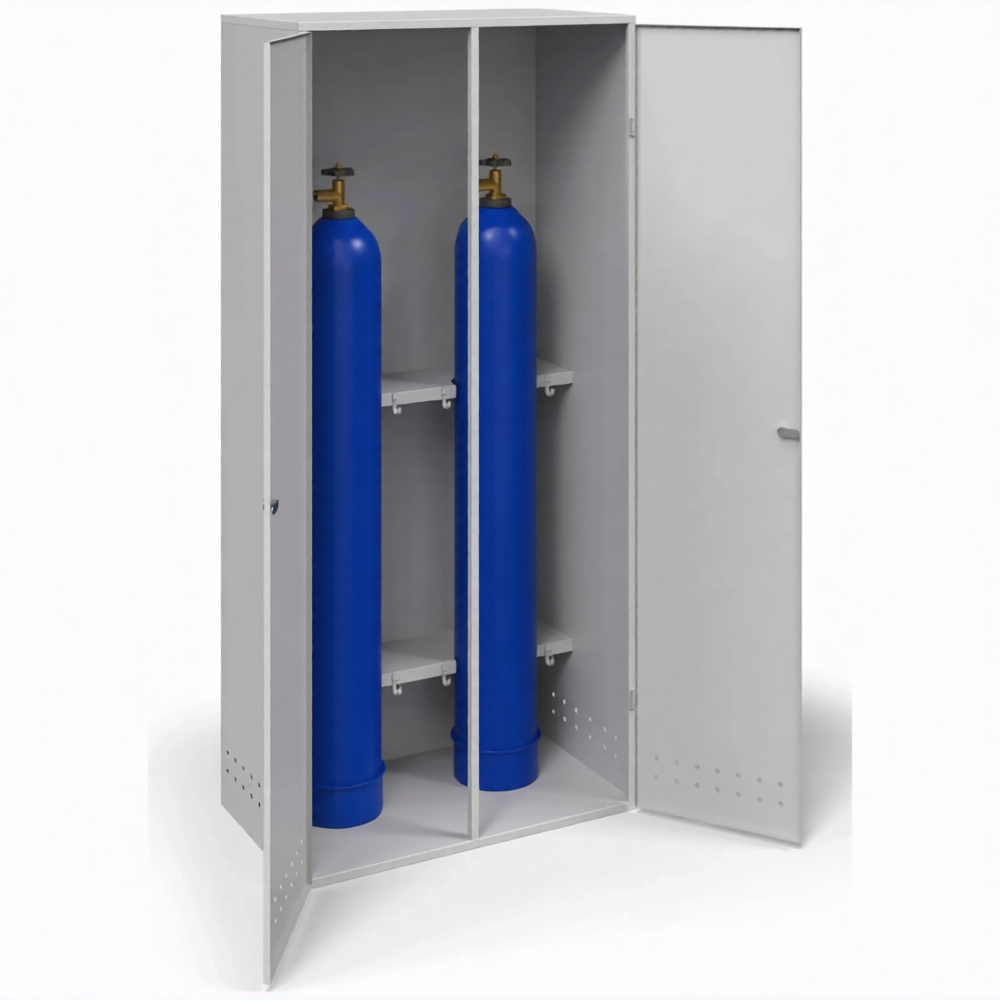- Оптимальная вместимость для ответственных участков — шкаф рассчитан на хранение двух газовых баллонов, что является базовой потребностью для множества операций: газовая сварка и резка (баллон с горючим газом + кислород), работы с газовым инструментом или хранение резервных емкостей. Он обеспечивает парное размещение, занимая при этом минимум полезной площади, и идеально подходит для участков, где важна повышенная надежность и устойчивость конструкции.