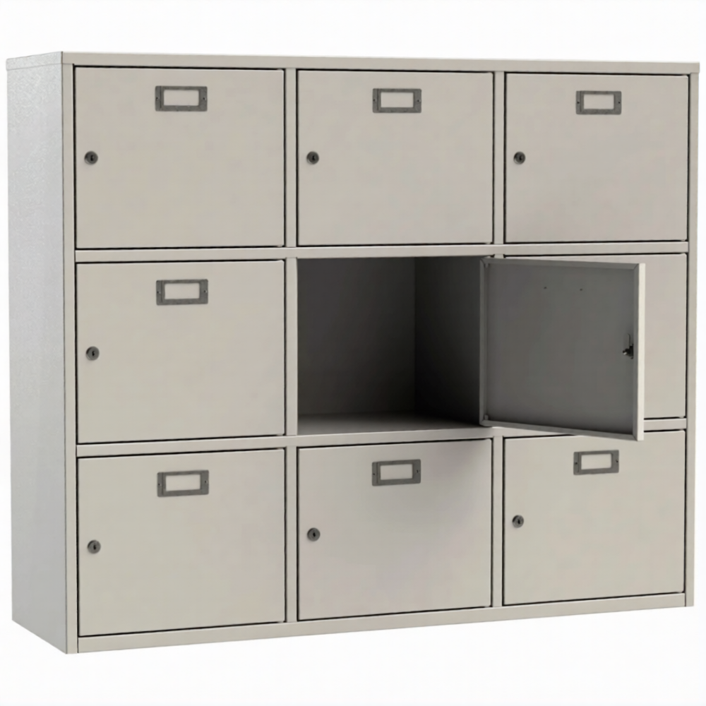 • 9 ячеек для касок. Каждая ячейка оснащена почтовым замком с двумя ключами в комплекте.