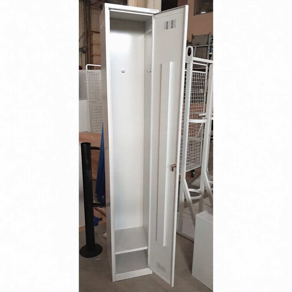 • Шкаф для хранения одежды окрашен порошковой краской серого цвета (RAL 7035), шкаф для медицинских учреждений может быть окрашен белой краской, устойчивой к моющим средствам.