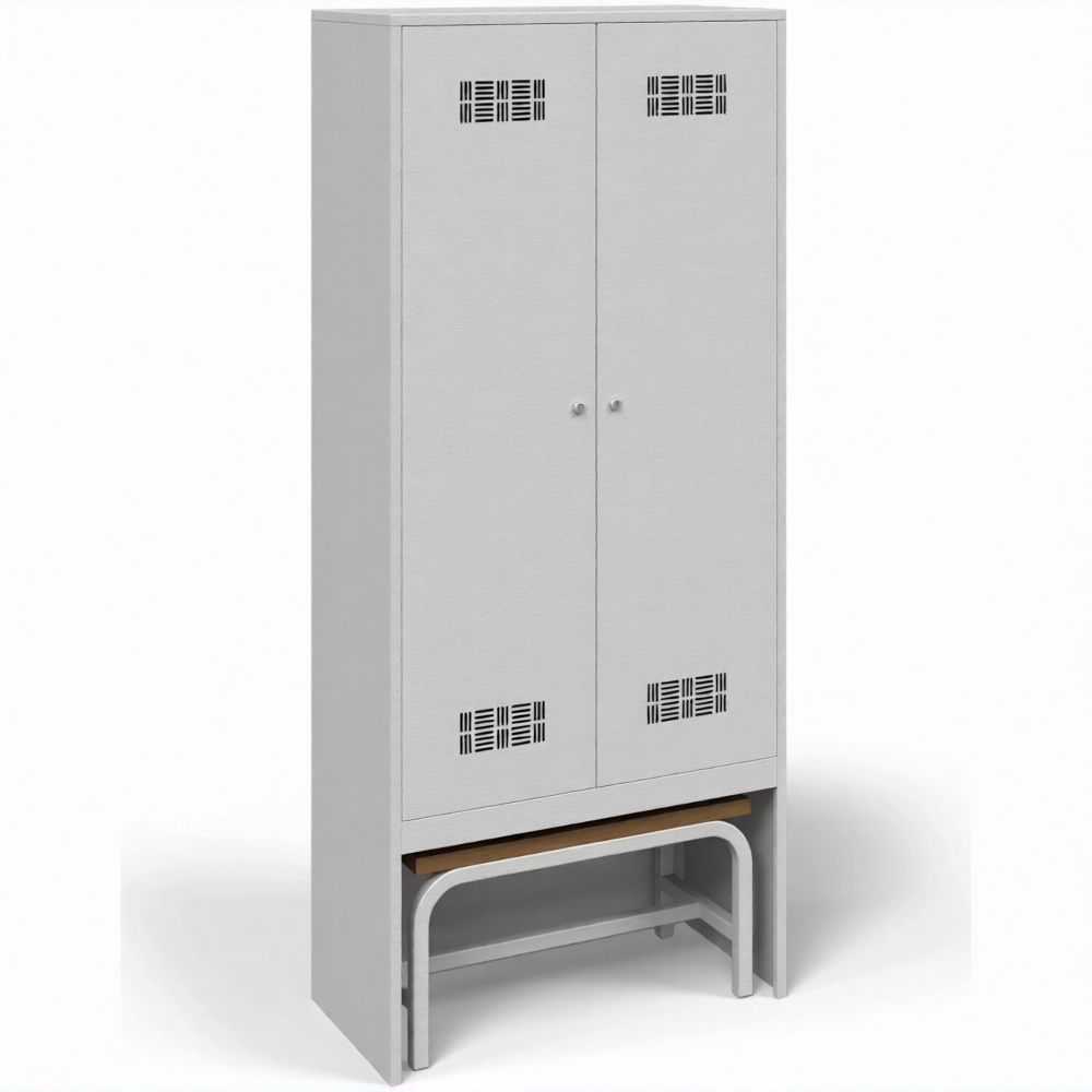 Шкаф для одежды металлический ШРВ-П-800 двухстворчатый с нишей под скамью