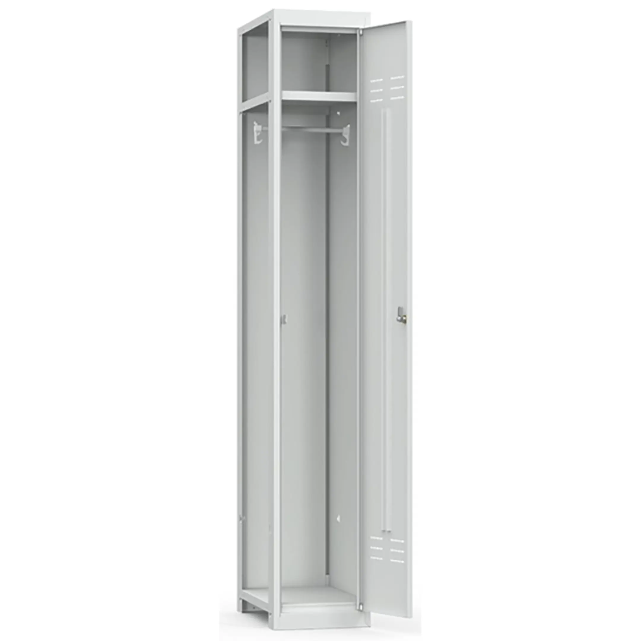 • комплектуется полкой для головных уборов, металлической перекладиной для вешалок, проушиной для навесных замков и двумя крючками для одежды;