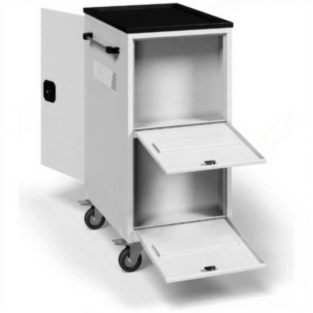 - Интегрированная система зарядки — оснащена системой управления питанием для одновременной зарядки всех ноутбуков от одной розетки, с защитой от перегрузок и контролем процесса, что гарантирует их полную готовность к работе.